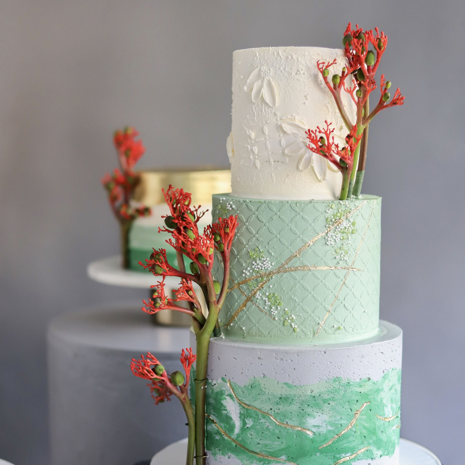 - The visual design of cakes will be completed using various decoration techniques such as metallic (gold, silver, pearlescent) paint application, working with fresh flowers, stencil application, marble effect application, and edible paper covering.