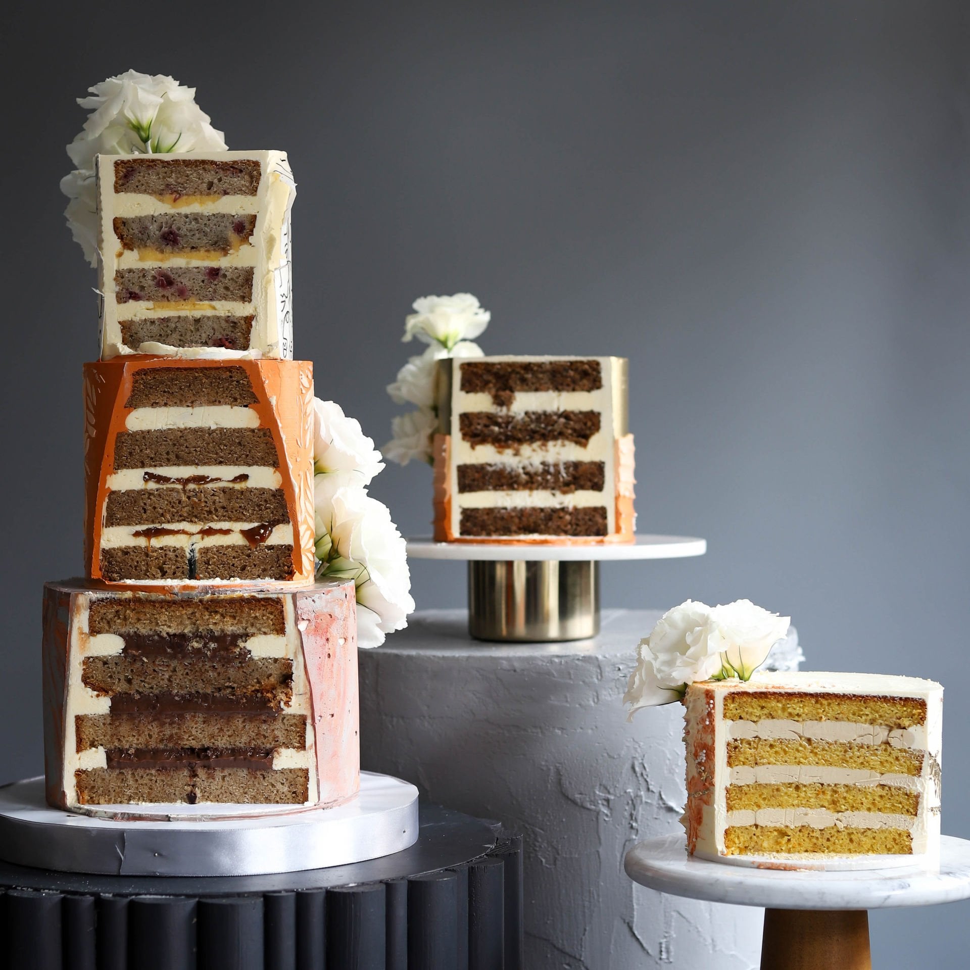 - In the workshop, different cake and filling combinations are used for each cake tier.