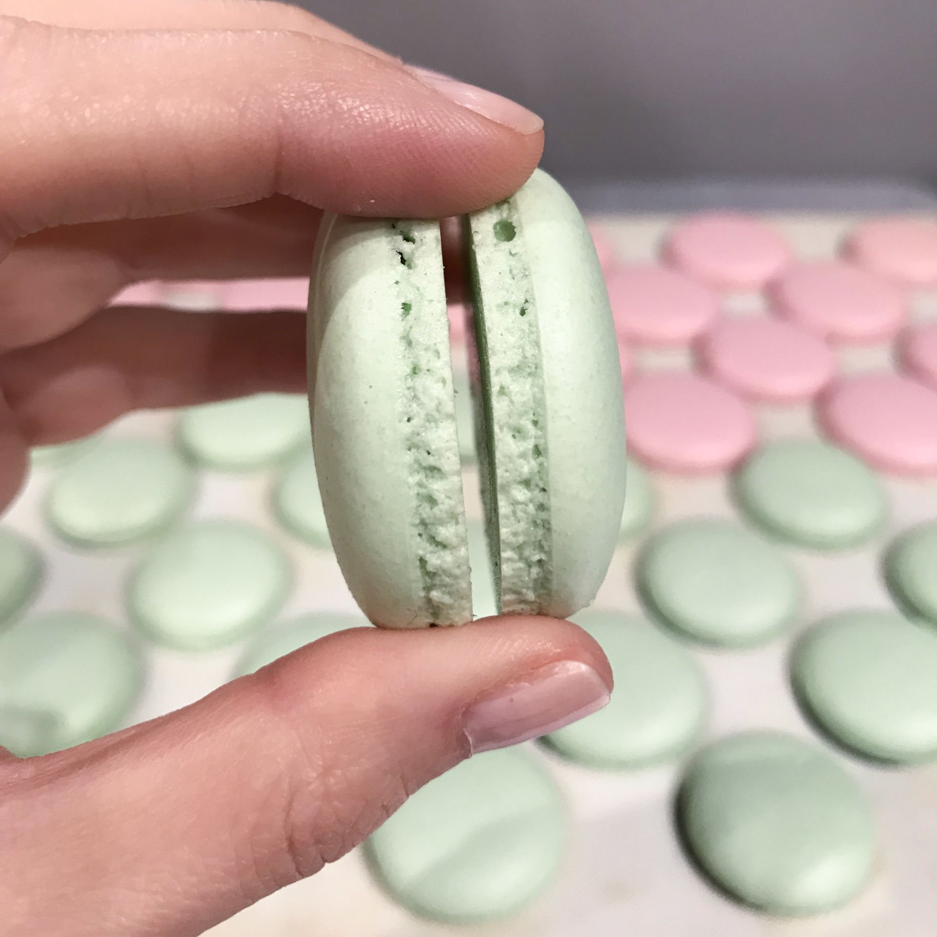 - Preparation of the batter suitable for Italian meringue macarons.