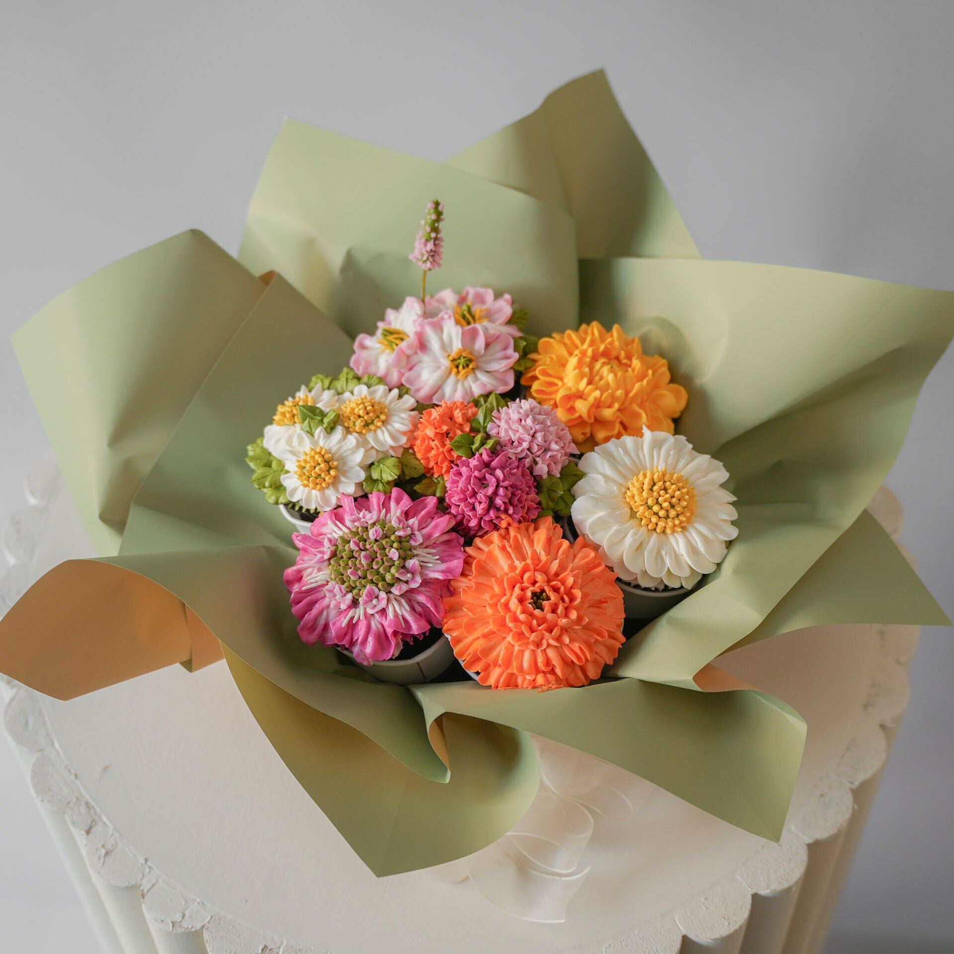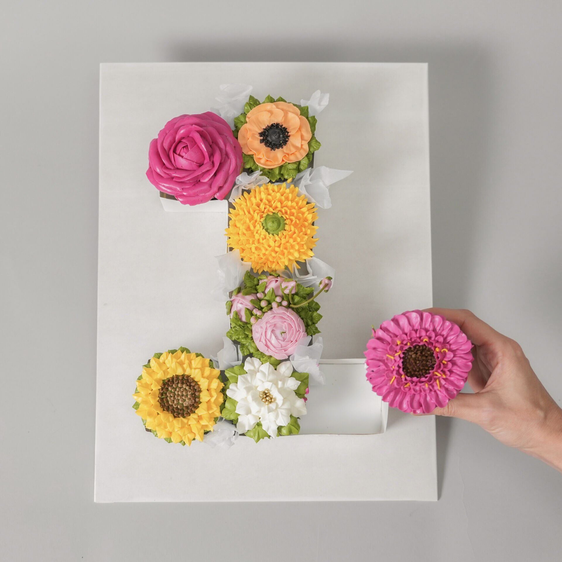 - Hazırlanan çiçeklerle cupcake buketi oluşturma