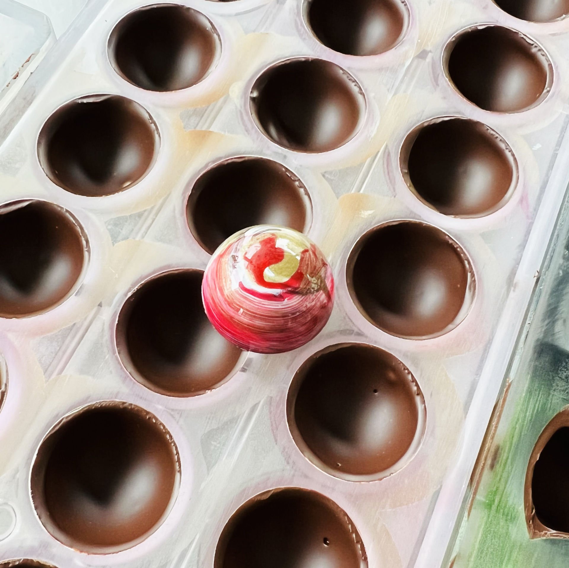 - Hazırlanan dolguların, incecik çikolata kabuklarıyla birleştirilmesi