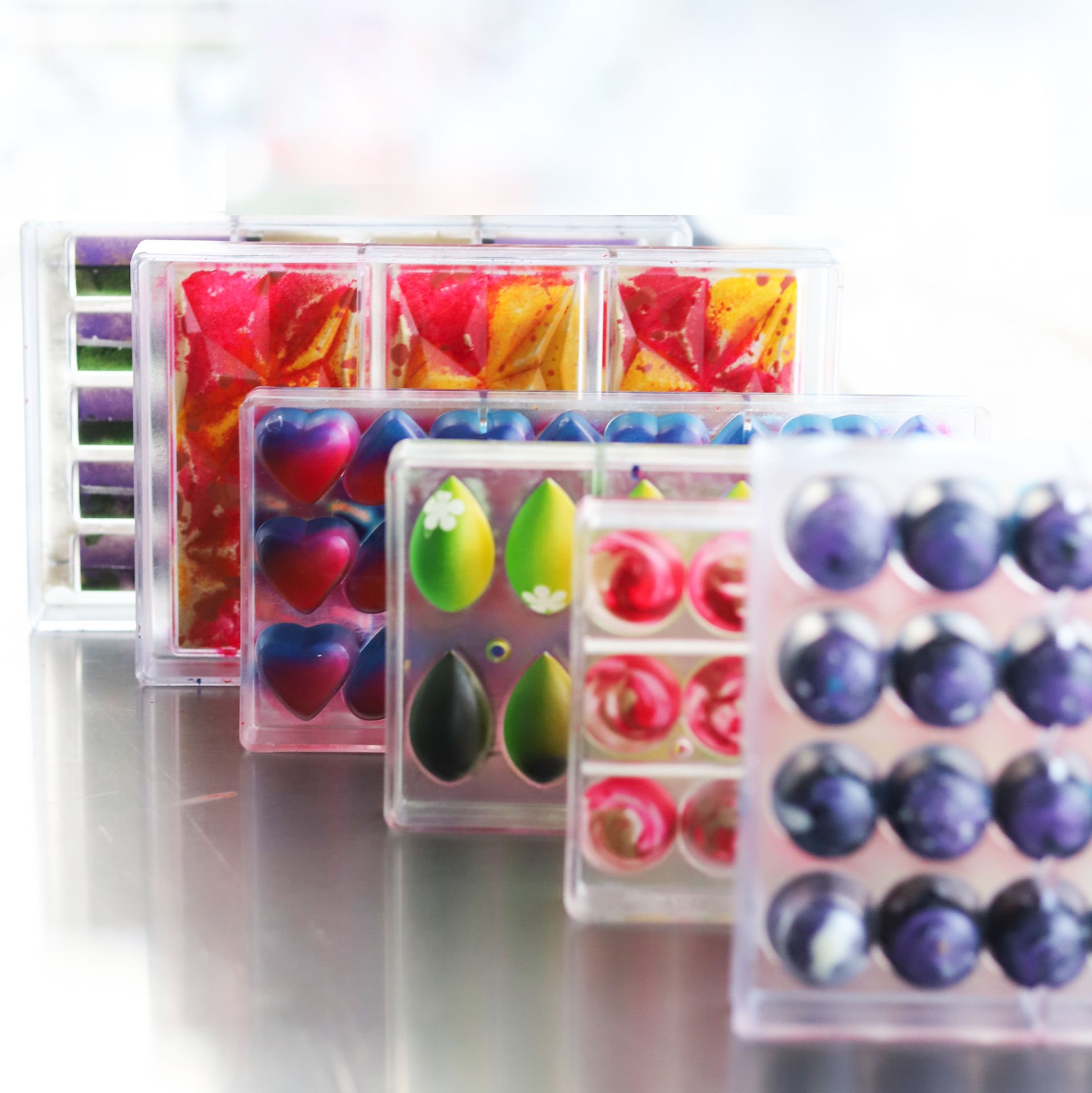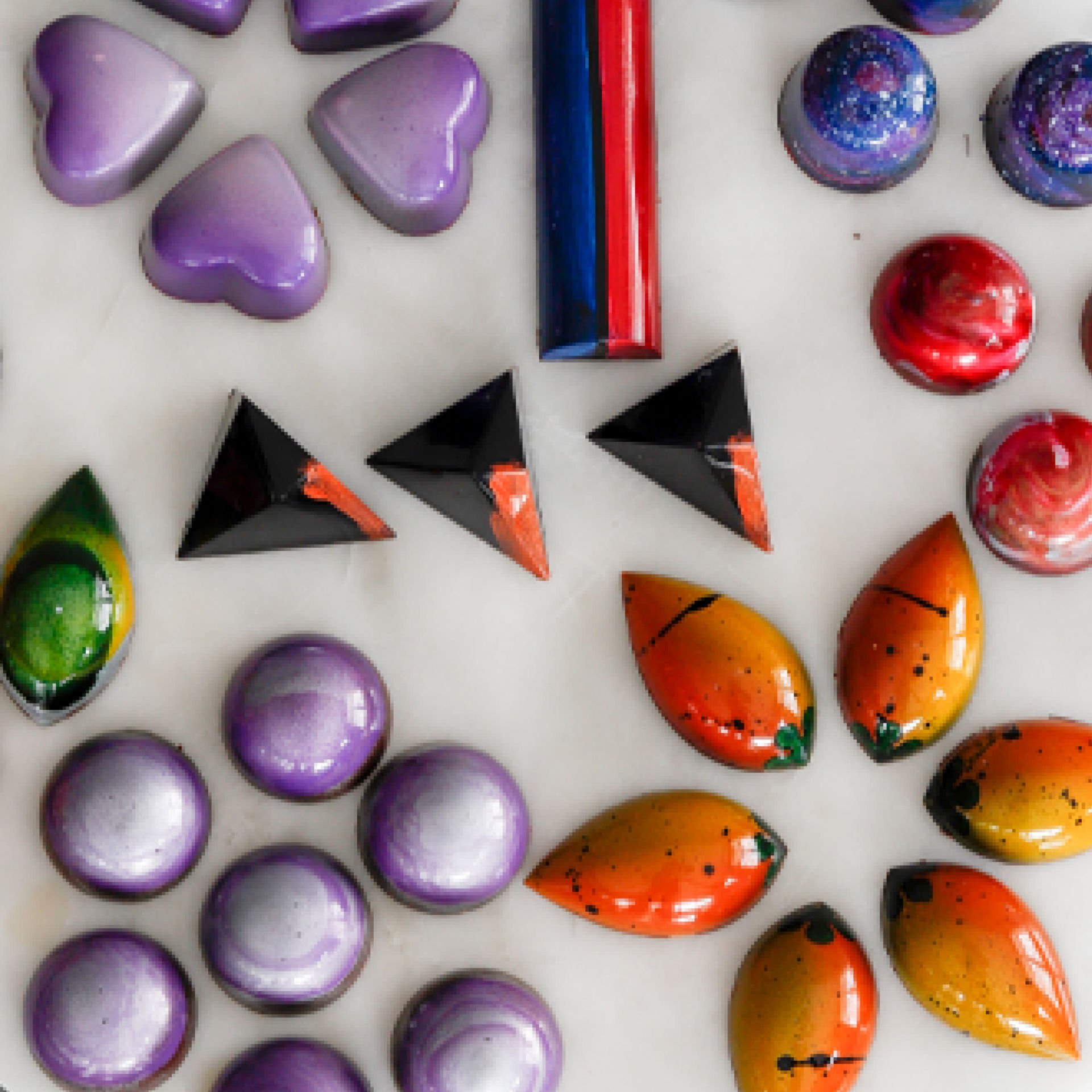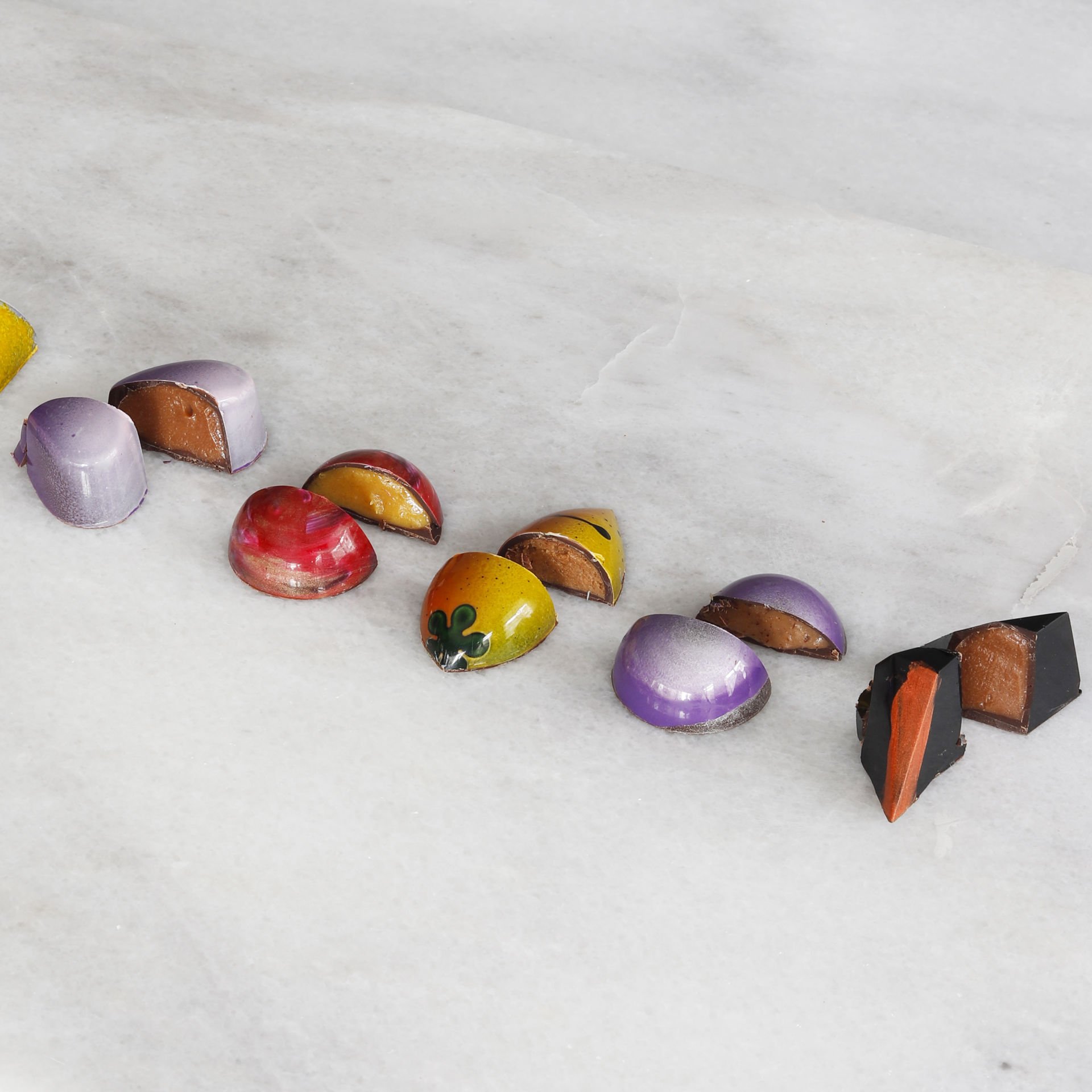 Parlak ve rengarenk kabuklarla enfes iç dolguları birleştirerek benzersiz çikolatalar tasarlıyoruz! Farklı teknikler kullanarak siz de bir çikolata şefi olabilirsiniz. Bu heyecan verici yolculuğa katılmak için şimdi harekete geçin!