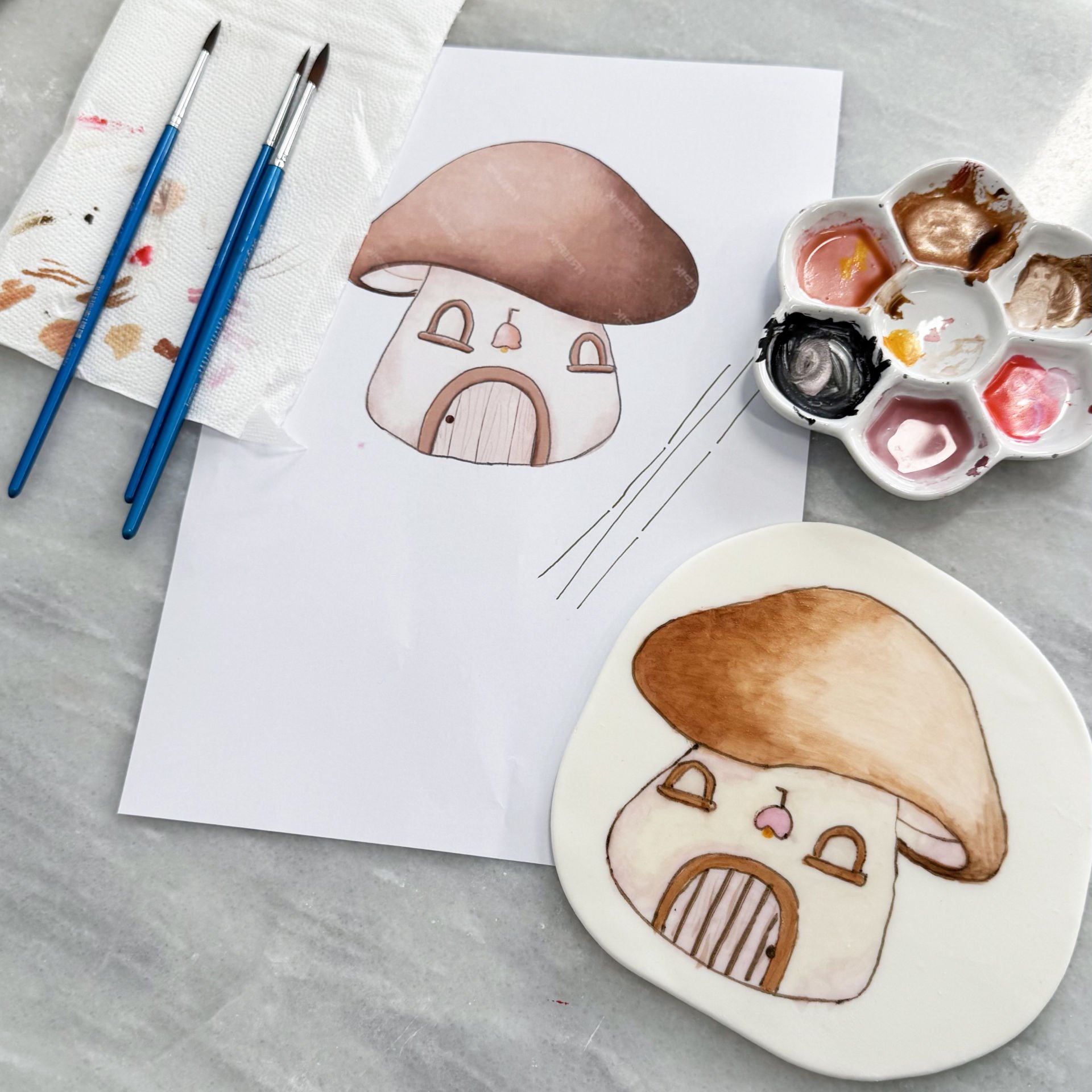 - Serbest el suluboya tekniği ile 2 boyutlu mantar evin boyanması